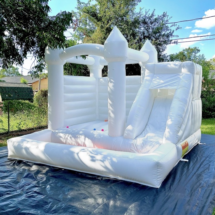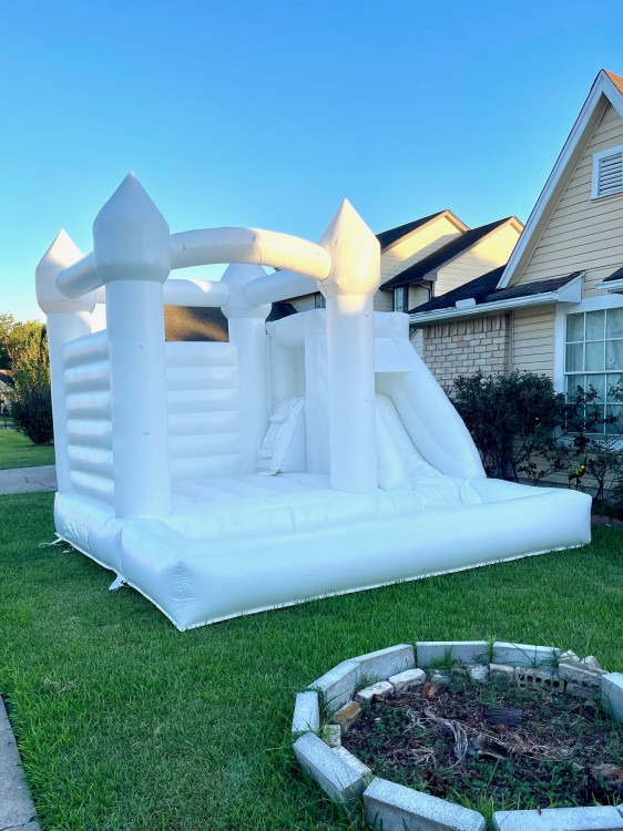 โจ Bring elegance and excitement to your next event with the All-White Luxury Bounce House with Slide. Designed to be both a stylish centerpiece and a source of endless fun, this inflatable is perfect for weddings, baby showers, graduations, birthdays, and upscale celebrations of all kinds. Its sleek, all-white design stands out in any setting and doubles as a picture-perfect backdrop for balloon garlands, floral arrangements, and custom décor. Whether it’s a backyard gathering or a large formal event, this bounce house blends seamlessly into your theme while keeping kids happily entertained.