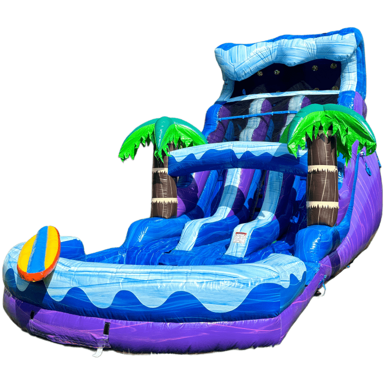 ๐ Designed for kids, teens, and thrill-seeking adults, this wide single-lane slide launches riders down a fast wave-style lane and into a deep, refreshing splash pool for the perfect tropical finish. With its palm trees, surfboard detail, and ocean-inspired patterns, the Tropic Surfer creates the ultimate island vibe for birthdays, summer parties, and unforgettable photos. It’s a fan favorite for families who want a mix of speed, splash, and tropical style in one incredible inflatable.